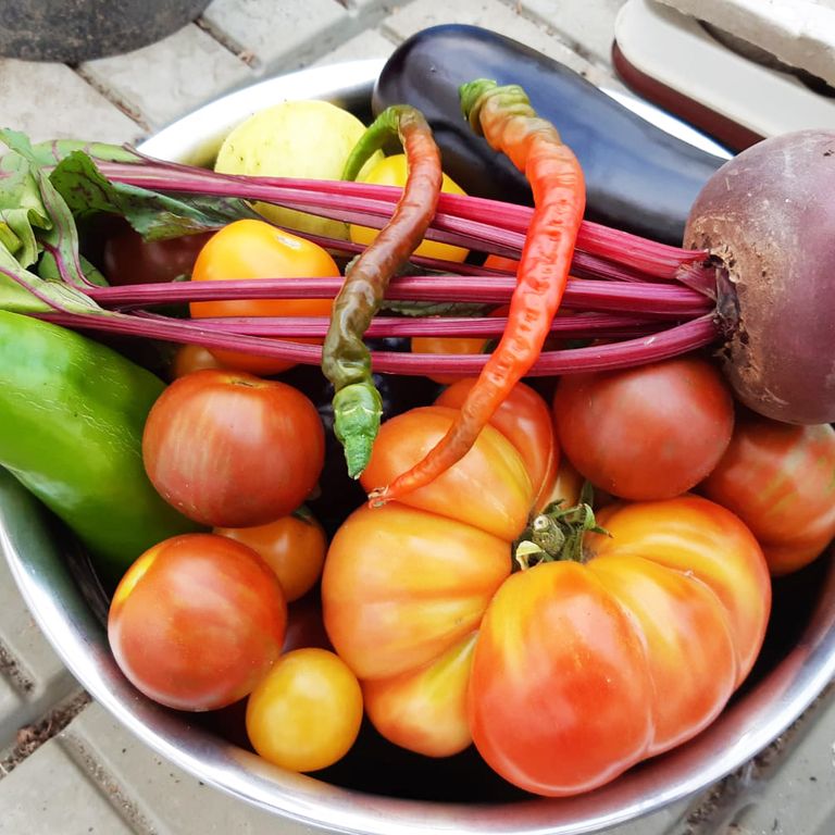 Wir bauen ca. 30 Gemüse- und Salatsorten an.. Darunter fallen Tomaten, Auberginen, Paprika, Kartoffeln, verschiedene Kohlsorten, verschiedene Salate, Zwiebeln, Kürbisse, Karotten, Lauch, Sellerie und einige andere.